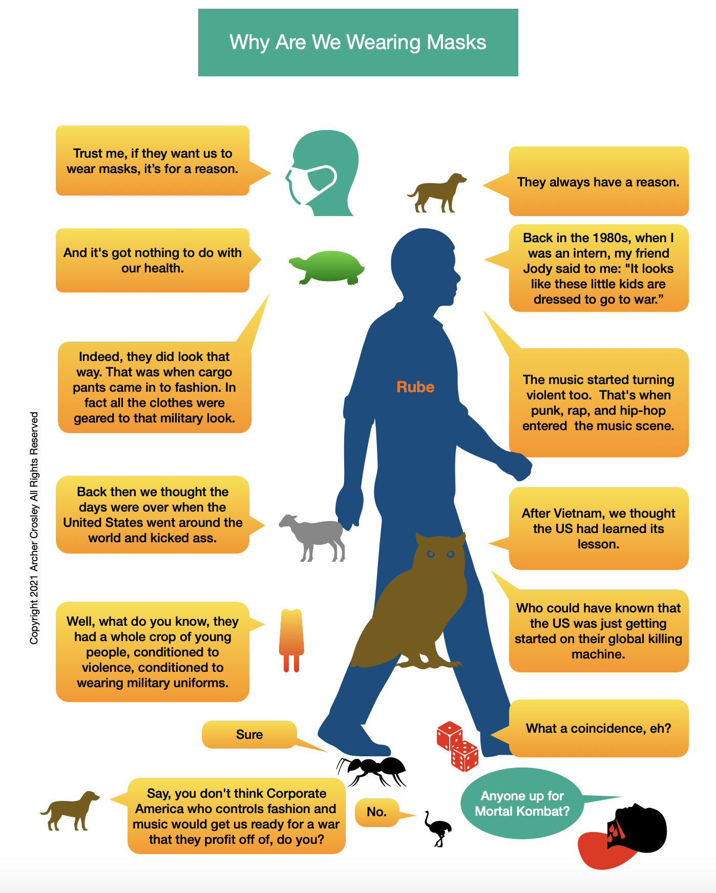 Why are we really wearing a mask? There is no science to it; so what’s the real reason? We’ll find out in about twenty years.
